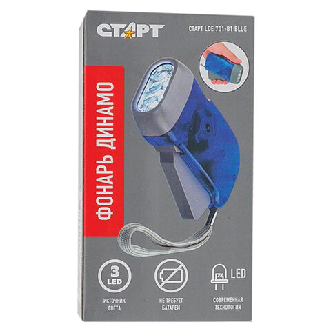 Динамо-фонарь аккумуляторный СТАРТ 3хLED, заряд от движения рычагом, LDE 701-B1, 12251