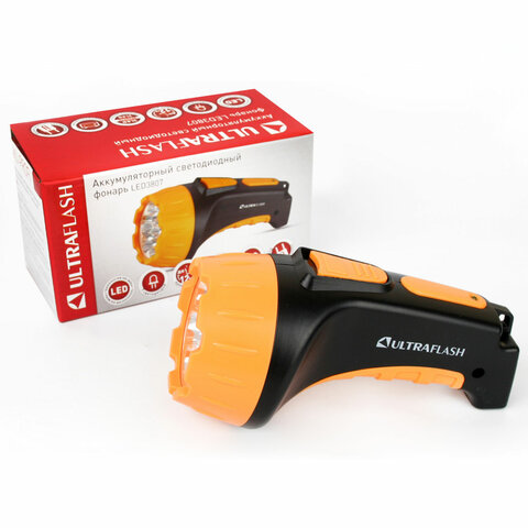 Фонарь аккумуляторный ULTRAFLASH 7хLED, 2 режима, выдвижная вилка, заряд от сети, LED3807