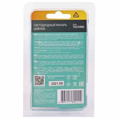 Фонарь компактный CAMELION XP-E, ЯРКИЙ, ZOOM, 3 режима, питание 1хAAА (не в комплекте), LED51532