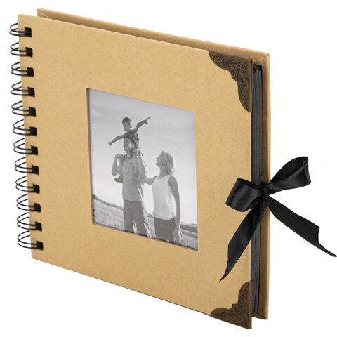 Фотоальбом 16х18 см, 20 черных листов, обложка КРАФТ, уголки/стикеры/ручка/клей, BRAUBERG Black&Kraft, 880652