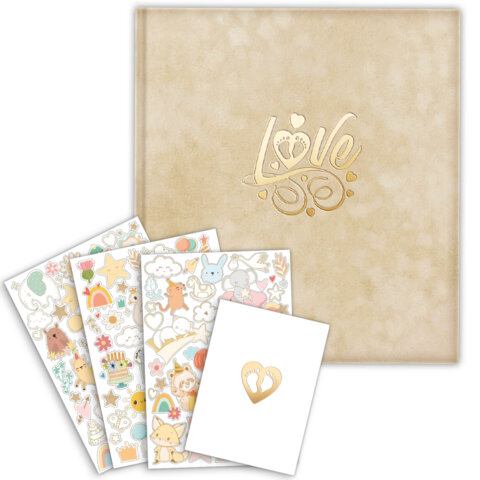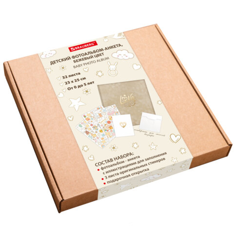 Фотоальбом-анкета детский 23х25 см, 32 листа, стикеры, открытка, конверт, бежевый бархат, BRAUBERG, 391421