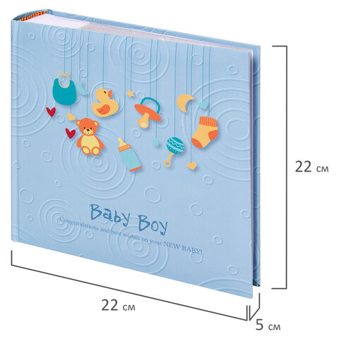 Фотоальбом BRAUBERG "Baby Boy" на 200 фото 10х15 см, твердая обложка, бумажная страница, бокс, голубой, 391144