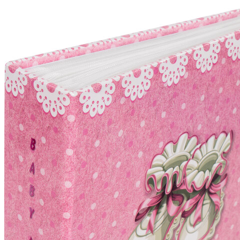 Фотоальбом BRAUBERG "Baby shoes" на 200 фото 10х15 см, твердая обложка, термосклейка, розовый, 39114
