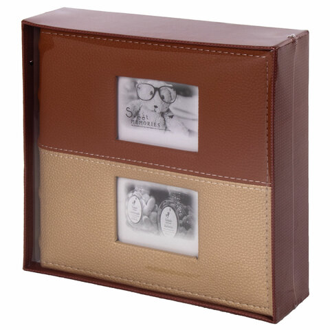 Фотоальбом BRAUBERG "Mirror" на 200 фото 10х15 см, под кожу, бумажные страницы, бокс, 391184