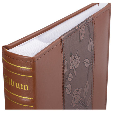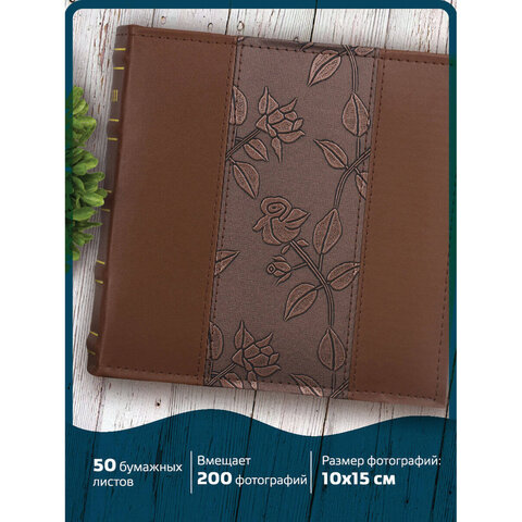 Фотоальбом BRAUBERG на 200 фото 10х15 см, под кожу (комбинированную), бумажные страницы, бокс, коричневый, 390483