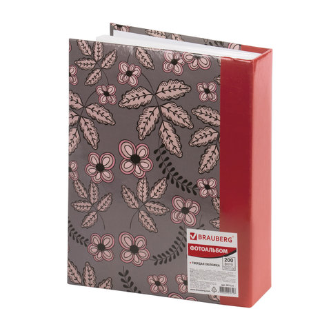 Фотоальбом BRAUBERG на 200 фото 10х15 см, твердая обложка, "Флора", серый с красным, 391121