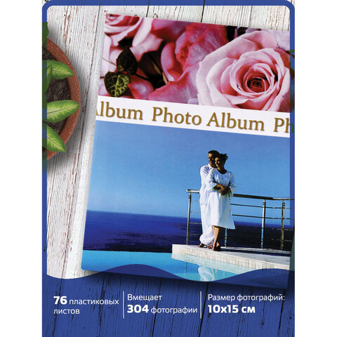 Фотоальбом BRAUBERG на 304 фотографии 10х15 см, твердая обложка, "Романтика", голубой с розовым, 390675