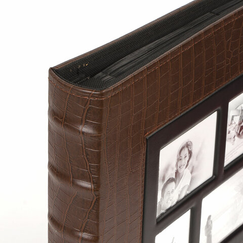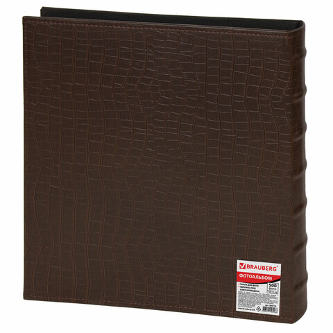 Фотоальбом BRAUBERG на 500 фотографий 10х15 см, обложка под кожу крокодила, рамка для фото, коричневый, 390715