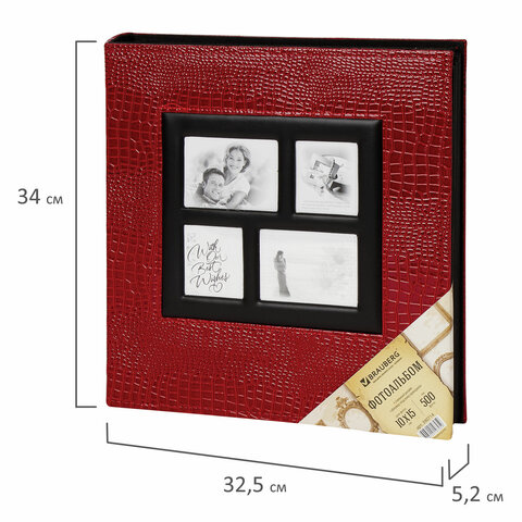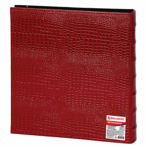 Фотоальбом BRAUBERG на 500 фотографий 10х15 см, обложка под кожу крокодила, рамка для фото, красный, 390714