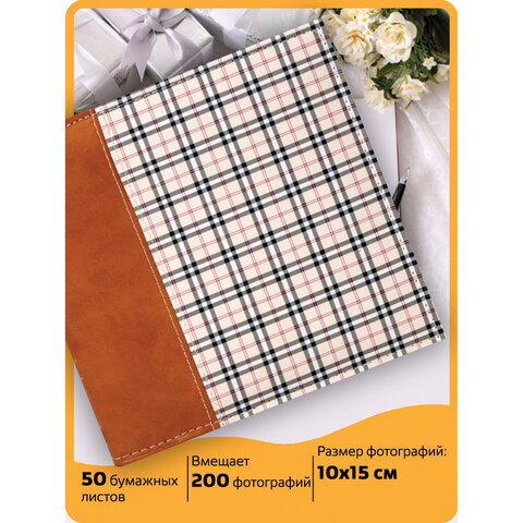 Фотоальбом BRAUBERG "Шотландка" на 200 фото 10х15 см, под кожу, бумажные страницы, бокс, 391192