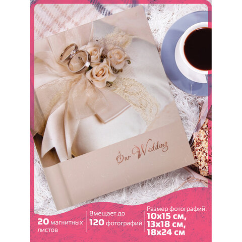 Фотоальбом BRAUBERG свадебный "Наша свадьба" 20 магнитных листов, 23х28 см, спираль, 391154