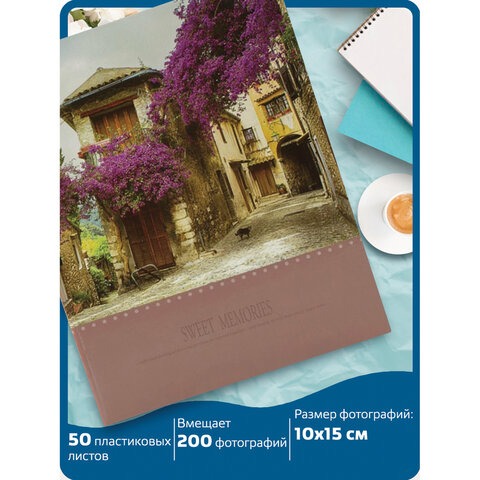 Фотоальбом BRAUBERG "Цветущая улица" на 200 фото 10х15 см, твердая обложка, термосварка, 391163