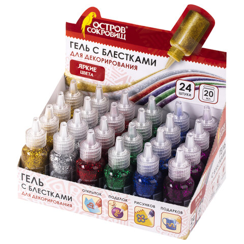 Гель с блестками ОСТРОВ СОКРОВИЩ, для декора, поделок, DIY, творчества, оформления, 20 мл, цвета ассорти, в дисплее, 662260