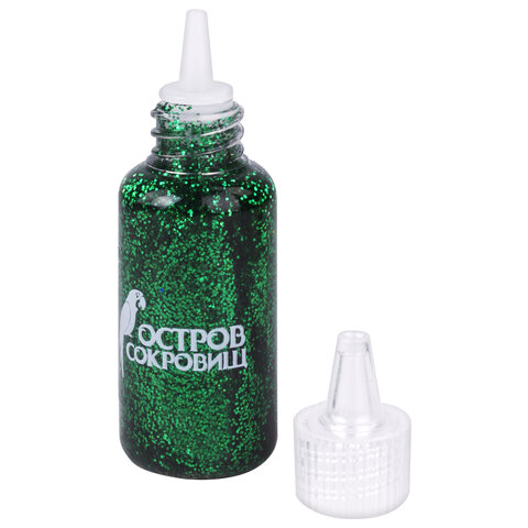 Гель с блёстками ОСТРОВ СОКРОВИЩ - это блестящие наборы для творчества и декорирования поделок из бумаги, картона, дерева, пластика и других материалов. Удобный наконечник с дозатором позволяет легко наносить гель на любую поверхность.
