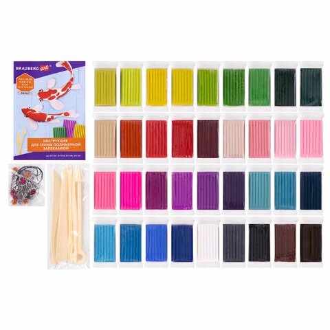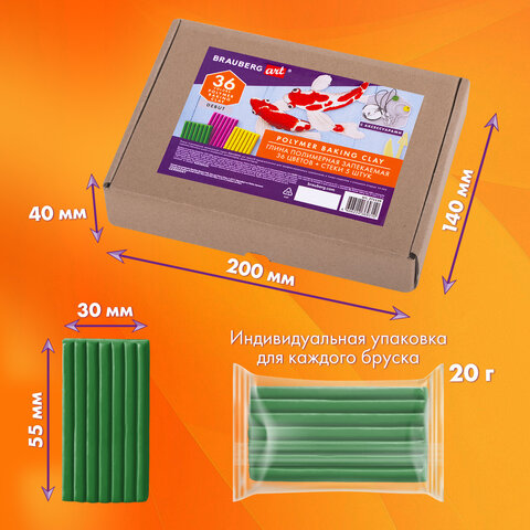 Глина полимерная запекаемая, НАБОР 36 цветов по 20 г, с аксессуарами, в гофрокоробе, BRAUBERG, 271159