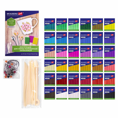 Глина полимерная запекаемая, НАБОР 36 цветов по 20 г, с аксессуарами в кейсе, BRAUBERG ART, 271164