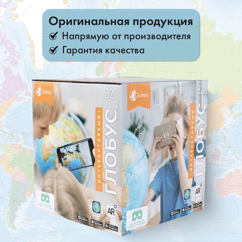 Глобус интерактивный + очки VR политический, Globen, 32 см, рельефный, с подсветкой, INT13200315