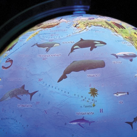 Глобус зоогеографический. Подходит для использования в детских садах и школах. Предназначен для изучения географии и животных, населяющих разные уголки нашей планеты.