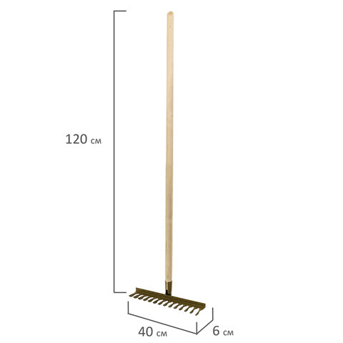 Грабли классические витые, 14 зубьев, ширина 40 см, деревянный черенок 120 см, КМ000876