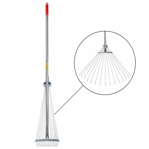 Грабли веерные проволочные раздвижные, 15 зубьев, ширина 15-58 см, черенок 115 см, ГРАНДМАСТЕР, 700348
