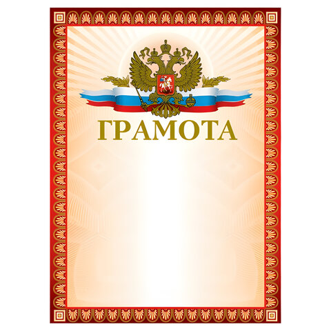 Грамота А4, мелованный картон, конгрев, тиснение фольгой, красная, BRAUBERG, 123062