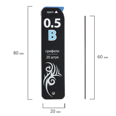 Грифели запасные 0,5 мм, B, BRAUBERG, КОМПЛЕКТ 20 шт., "Black Jack", 180449