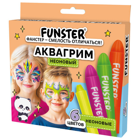 Аквагрим для лица и тела, 6 НЕОНОВЫХ цветов, FUNSTER (ФАНСТЕР), легко смываются, 192573
