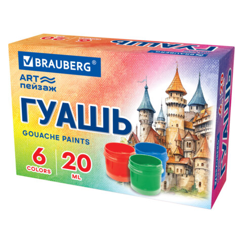 Гуашь BRAUBERG "ЗАМОК", 6 цветов по 20 мл, 192555