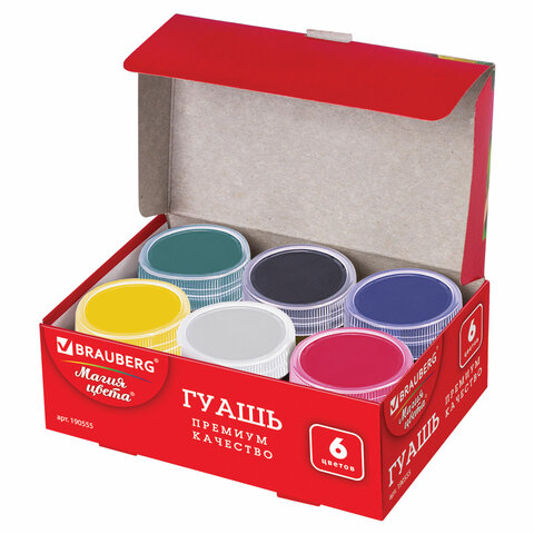 Гуашь BRAUBERG "МАГИЯ ЦВЕТА", 6 цветов по 20 мл, 190555