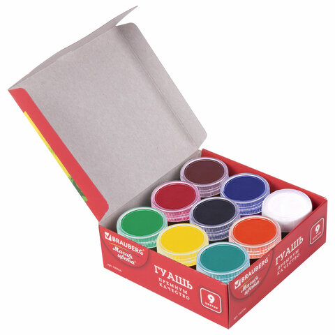 Гуашь BRAUBERG "МАГИЯ ЦВЕТА", 9 цветов по 20 мл, 190556