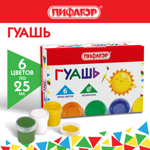Гуашь ПИФАГОР "СОЛНЫШКО", 6 цветов по 25 мл, 192645