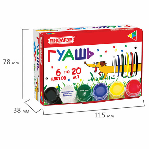 Гуашь ПИФАГОР "ВЕСЕЛАЯ ТАКСА", 6 цветов по 20 мл, 192378