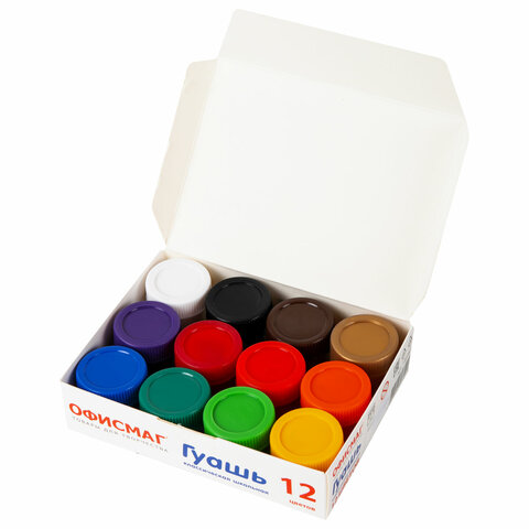 Гуашь школьная ОФИСМАГ, 12 цветов по 17 мл, 192381