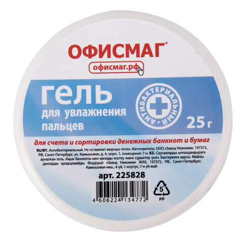 Гель для увлажнения пальцев АНТИБАКТЕРИАЛЬНЫЙ ОФИСМАГ, 25 г, Россия, 225828