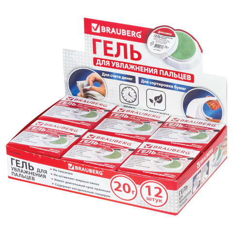 Гель для увлажнения пальцев BRAUBERG облегчает работу при подсчете денег, перелистывании документов, бюллетеней, подписных листов и т.д.