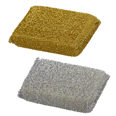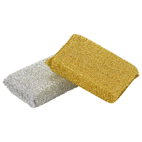 Губки для посуды 11,5х7,8х2,8 см, КОМПЛЕКТ 2 шт., поролон в металлизированной оплетке, LAIMA К1011, 601592