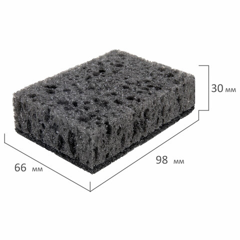 Губки для посуды 9,8х6,6х3 см, КОМПЛЕКТ 10 шт., SQUARE BLACK, КРУПНОПОРИСТЫЙ поролон с абразивным слоем, LAIMA, 608648