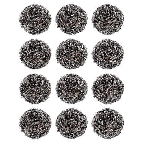 Губки (мочалки) металлические, спиральные, 12х15 г, КОМПЛЕКТ 12 шт., для посуды, гриля, плиты, LAIMA, 606658
