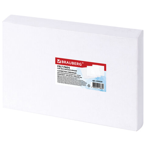Салфетки сменные для стирателя магнитного 235528 (160х240 мм), КОМПЛЕКТ 100 шт., РОССИЯ, BRAUBERG, 235529