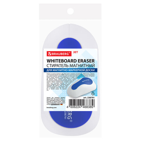 Магнитный стиратель BRAUBERG "Jet" предназначен для стирания сухим способом надписей, выполненных маркером, с белых досок.