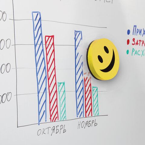 Стиратели магнитные для магнитно-маркерной доски, диаметр 90 мм, "Смайлик", КОМПЛЕКТ 3 ШТ., STAFF "Basic", ассорти, 237502