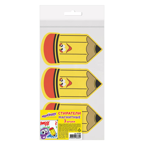 Стиратели магнитные для магнитно-маркерной доски ЮНЛАНДИЯ "Карандаш", 55х100 мм, КОМПЛЕКТ 3 ШТ., 237508.