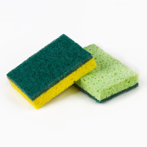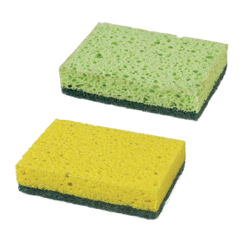 Губки для посуды 9,5х6,5х2 см, КОМПЛЕКТ 2 шт., ЦЕЛЛЮЛОЗНЫЕ (губчатые) с АБРАЗИВОМ, LAIMA К1106, 605487