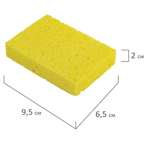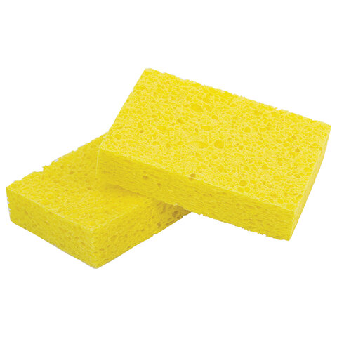 Губки для посуды 95х65х20 мм, ЦЕЛЛЮЛОЗНЫЕ, КОМПЛЕКТ 2 штуки, желтые, LAIMA, 700255