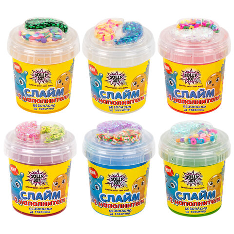 Слайм с наполнителями МИКС, 140 г, ассорти 6 видов, JOLLY JOT (ДЖОЛЛИ ДЖОТ), 665950