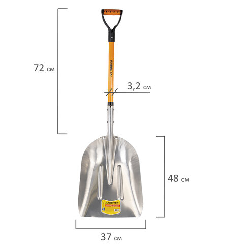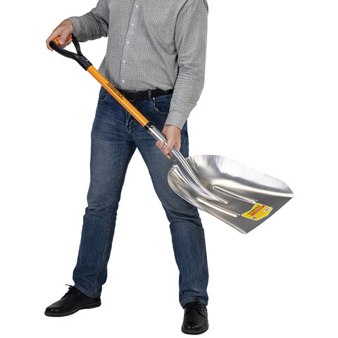Лопата алюминиевая для снега 37х48 см, ОБЩАЯ ДЛИНА 120 см, черенок стекловолокно, V-ручка, RABBITEX (РАББИТЕКС) "FIBERGLASS", 700486