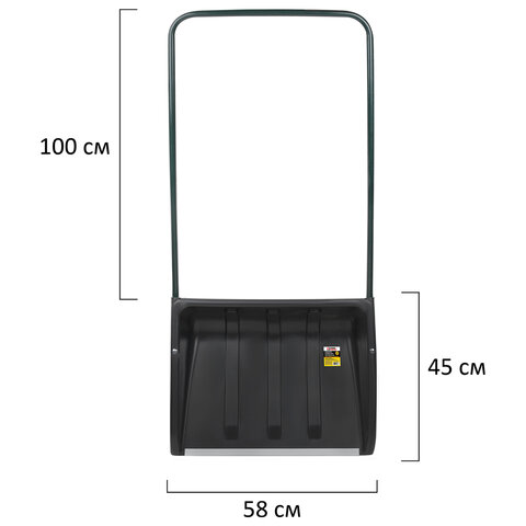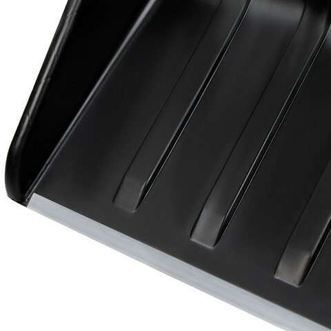 Лопата снеговая СКРЕПЕР 58х45 см пластиковый ЧЕРНЫЙ, алюминиевая планка, рукоятка 100 см, прочный, ГРАНДМАСТЕР, 700343