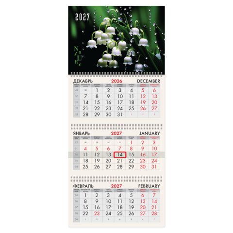 Календарь квартальный 2027г, 3 блока 3 гребня, бегунок, офсет, BRAUBERG, "Ландыши", 118266