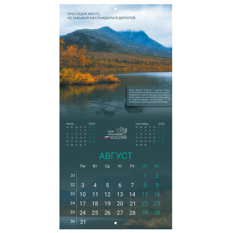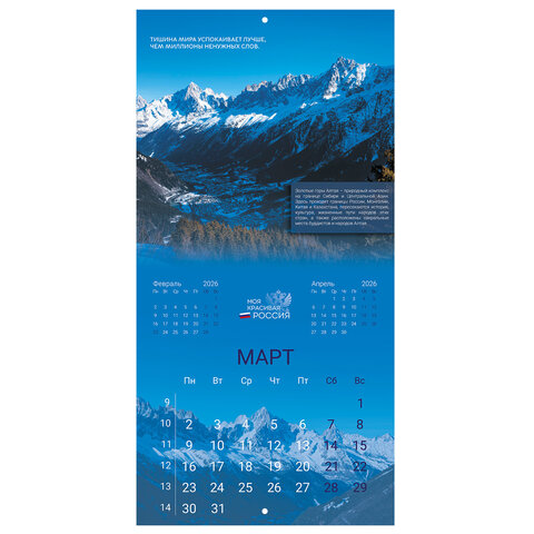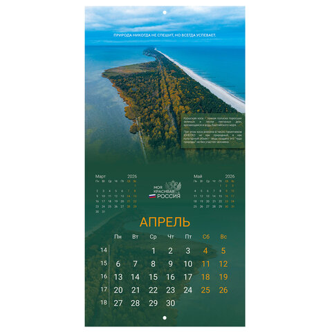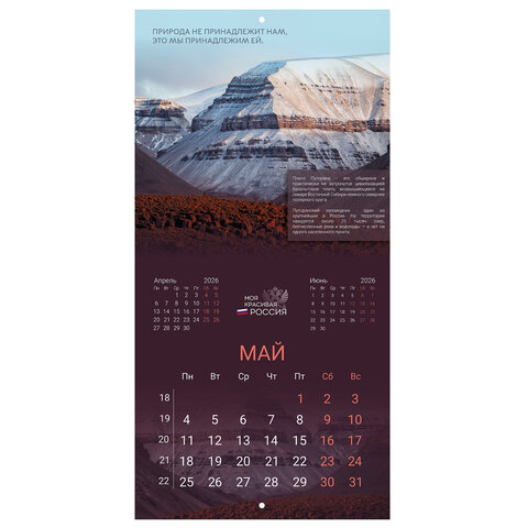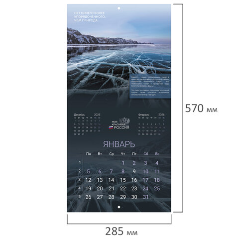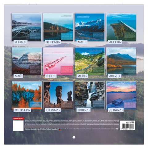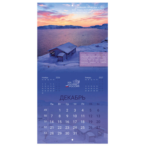 Календарь настенный перекидной 2026 г., BRAUBERG, 12 листов, 28,5х28,5 см, "Природа России", 116926