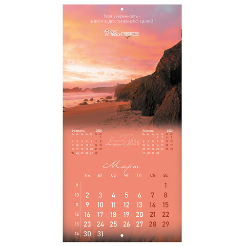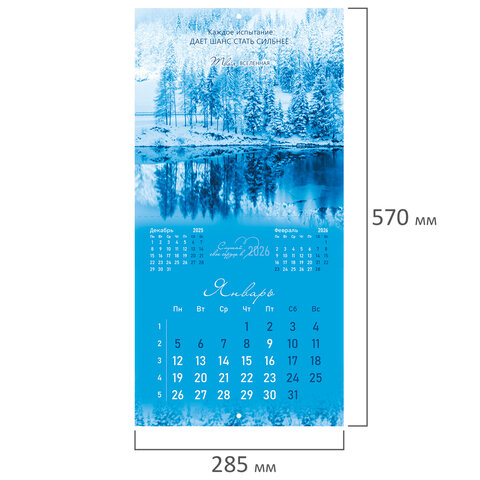 Календарь настенный перекидной 2026 г., BRAUBERG, 12 листов, 28,5х28,5 см, "Твоя вселенная", 116924